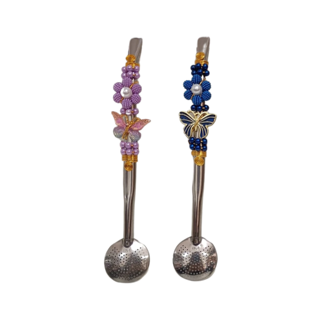 01 Bomba de Chimarrão 22 cm Inox Trabalhada Pérola Premium Bojo Fixo Sortidos.